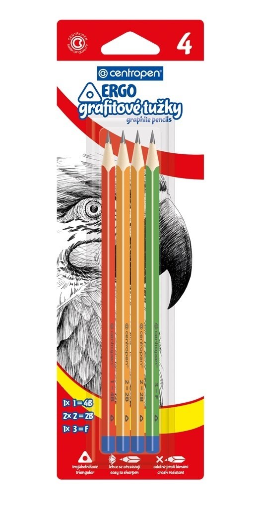 Grafitová trojúhelníková tužka v sadě. Obsahuje tužky číslo 1, 2 , 2 a 3. (B, HB, H).